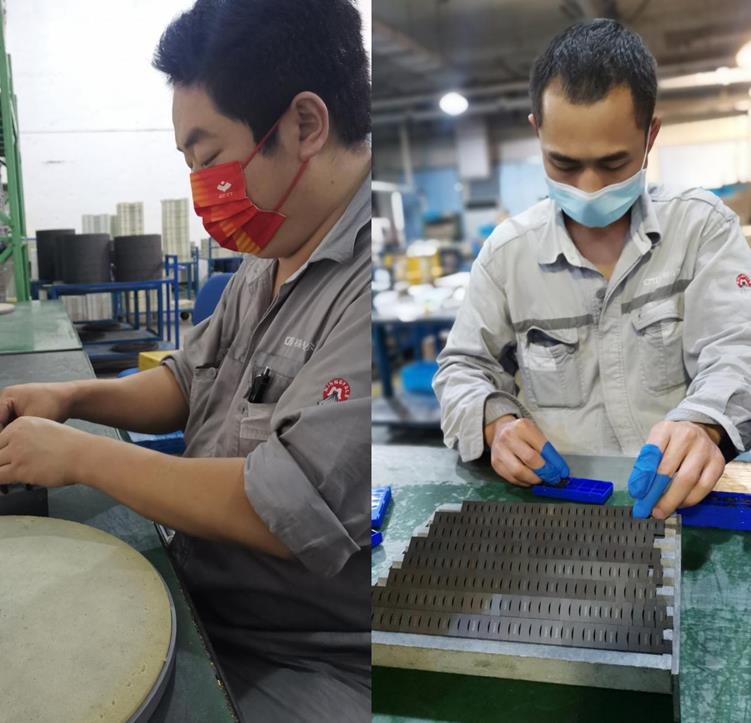 駐廠當日,由于時間緊迫,保證品種的毛坯供應成了當務之急。為發(fā)揮駐廠生產(chǎn)團隊的最大生產(chǎn)效率,盡快完成銷售催急品種的生產(chǎn),在嚴格遵守疫情防控要求的情況下,駐廠生產(chǎn)團隊積極配合,制定生產(chǎn)組織方案,“無死角”做好生產(chǎn)保障工作,確保品種的及時交付。在人員相對緊缺的情況下,駐廠人員為盡快完成催急品種,主動請纓延長上班時間。閉環(huán)生產(chǎn)第一天,刀片一廠碩果累累,壓制工序超額完成11個品種的壓制;燒結(jié)工序在人員數(shù)量減半的情況下維持6臺壓力爐和1臺真空爐的正常運行,保障壓制當天壓坯和燒結(jié)產(chǎn)品的及時轉(zhuǎn)出。