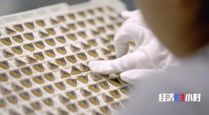 在硬質合金國家重點實驗室里,每秒9600幀的超高速攝像機鏡頭記錄下機床硬質合金刀片高速飛舞、削鐵如泥的畫面,金屬切屑猶如雪花般片片飛舞。