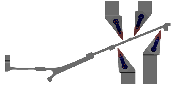 Toolselection principles: High efficiency is required. According to the features ofcomponents structure and angle restriction tailor-made side and face millingcutter is designed. MPHT series insert is suitable for machining of grooves onplane surface, while CNE544R08-2 is suitable for machining of groove on slope.Under these two situations, YBG205 is the recommended grade