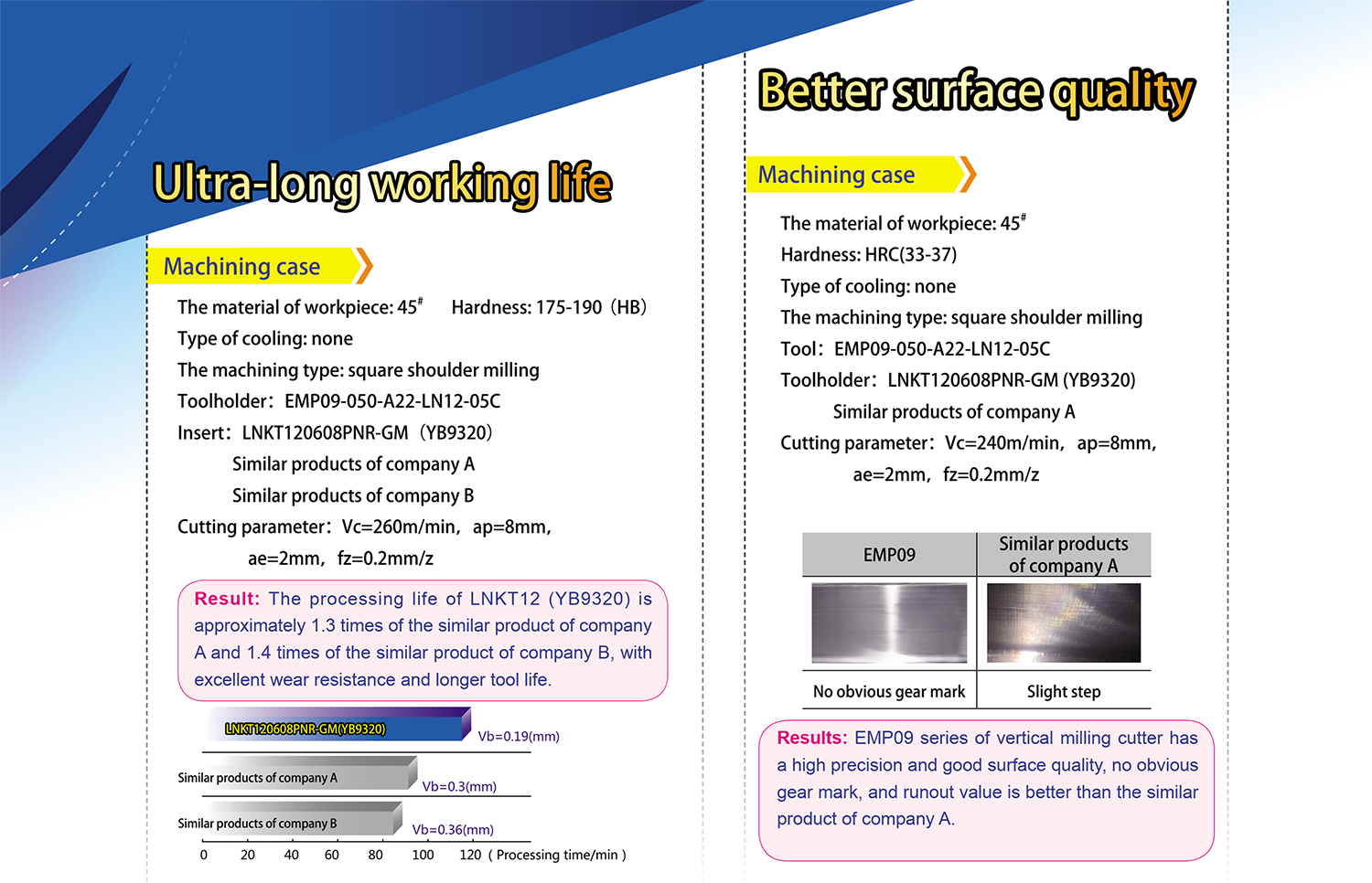 - Being suitable for square shoulder milling and deep shoulder milling of steel, cast iron, stainless steel and super hard materials, and being widely used in automobile industry, aerospace industry, general machinery industry and etc.